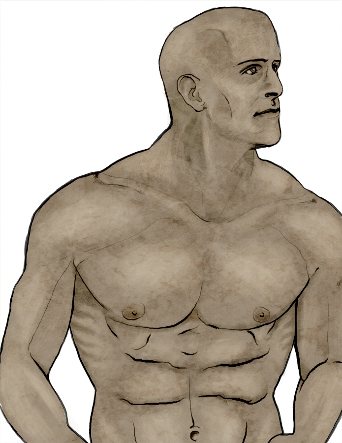 There are exceptions and subtle nuances, of course, and one such subtlety is the torso. A33R possesses two ribcages, a rigid external and a more flexible internal, with a lipid mesh weaving them together. The flexible ribcage functions similarly to a whale's, allowing for superior adaptability when changing pressure environments. Viewed from without, the A33R torso is much wider than a human's, but has the same depth, giving them a markedly unusual stature from most. Due to the mechanism by which A33R adapts to changes in pressure, the neck is also markedly thicker than in most humans.